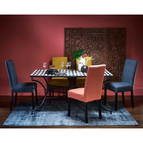Déhoussable au gré de vos envies, l’entretien de cette housse de chaise ocre jaune n’en sera que plus facile.